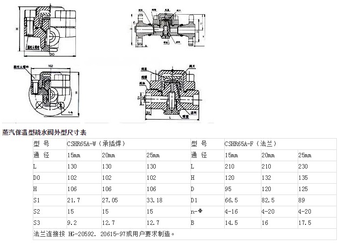 本疏水閥的汽室外面增加一層外殼,外殼內(nèi)室和蒸汽管道相通,利用管道自身蒸汽對(duì)疏水閥的主汽室進(jìn)行保溫,使主汽室的溫度不易降溫,保持汽壓,疏水閥緊緊關(guān)閉。當(dāng)管線產(chǎn)生凝結(jié)水,疏水閥外殼降溫,疏水閥才能開啟排水;在過熱蒸汽管線上如果沒有凝結(jié)水產(chǎn)生,疏水閥不會(huì)開啟,工作質(zhì)量高,節(jié)能效果好。該閥最高允許溫度為550℃,閥體為合金鋼,閥心為硬質(zhì)合金,經(jīng)久耐用,使用壽命長,是高壓.高溫過熱蒸汽專用疏水閥。