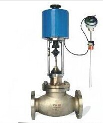 工作前主閥芯處于半開位置,傳感器處于自然狀態。接上電源,主閥芯全開。介質由箭頭方向流入主閥體、經閥芯對儲熱箱進行加熱。當溫度升到相應設定值時,傳感器即產生相應線性信號輸入一體化智能執行機構,隨即驅動閥桿、閥芯產生位移,關閉主閥芯停止加熱。當溫度低于設定值時,傳感器即產生線性信號輸入執行機構,驅使閥芯漸開,使介質按拋物線特性流入儲熱箱,進行加熱直至設定值。這樣被控介質始終在設定溫度范圍內被控制,從而達到控溫目的。