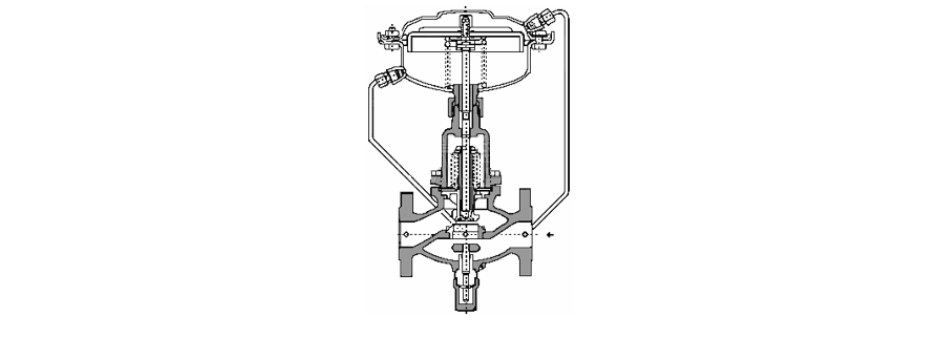 當流經閥的流量增加時,即△Ps增加,結果P1、Ps分別作用在上、下膜室,使閥芯向閥座方向移動,從而改變了閥芯與閥座之間的流通面積,使Ps增加,增加后的Ps作用在膜片上的推力加上彈簧反力與P1作用在膜片上的推力在新的位置產生平衡達到控制流量的目的。反正,同理。設定被控介質的流量用調整節流閥與閥座的相對位置來確定。